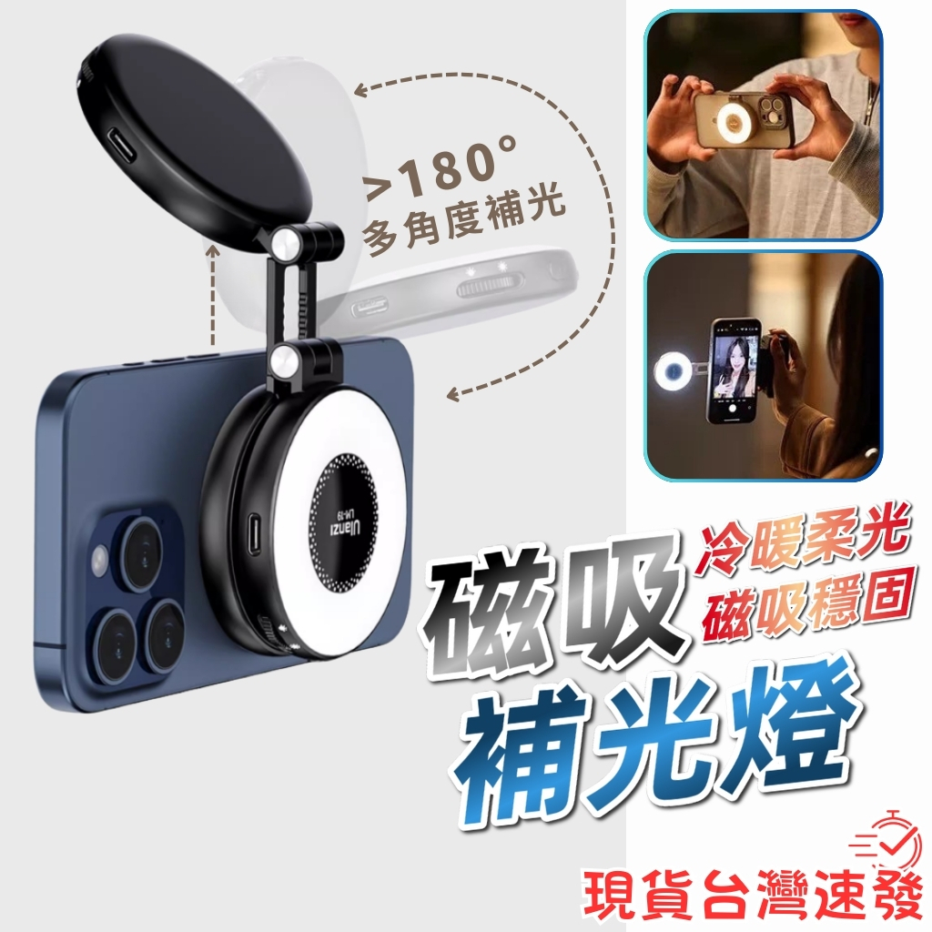 磁吸補光燈,拍照,直播,視訊更好看,旅照神器,冷暖柔光三檔可調,隨時補光不刺眼