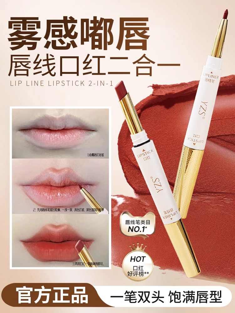 雙頭可用,一頭畫唇形,一頭畫口紅,具有防水防汗功能 保持唇妝整潔不暴露