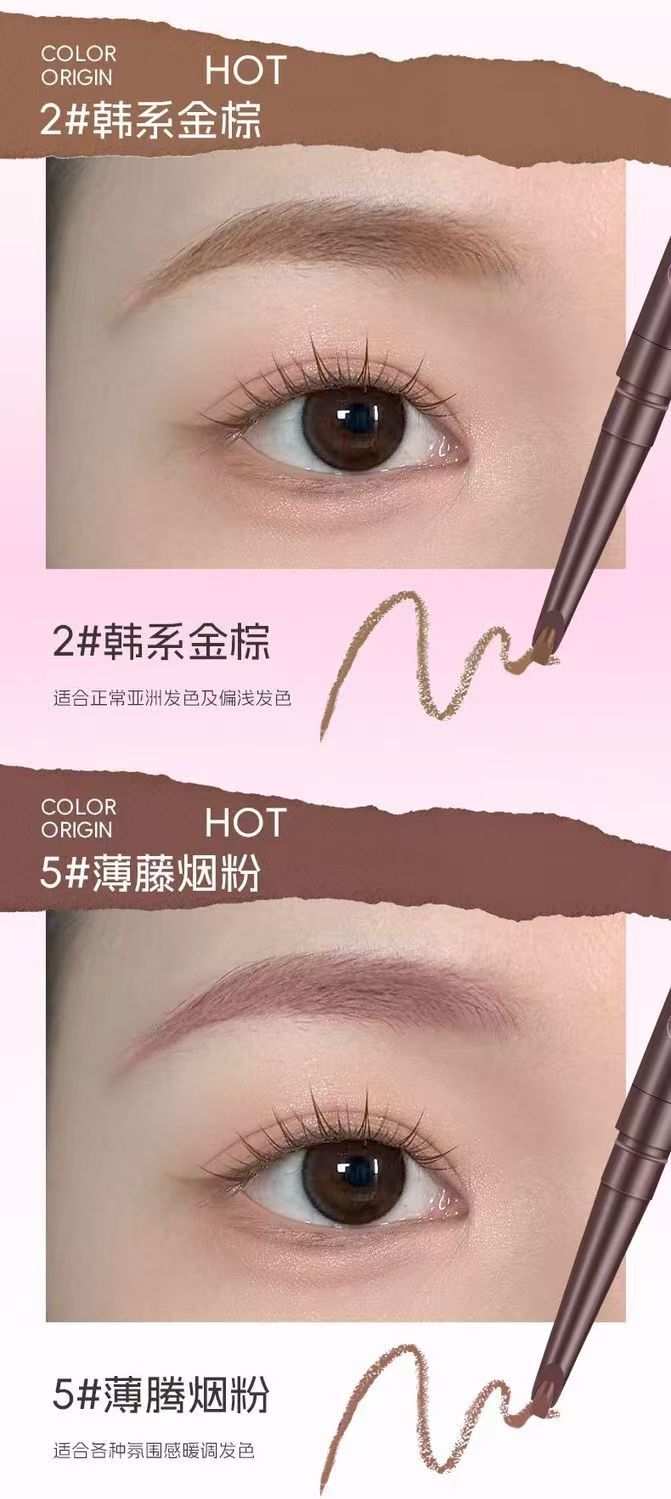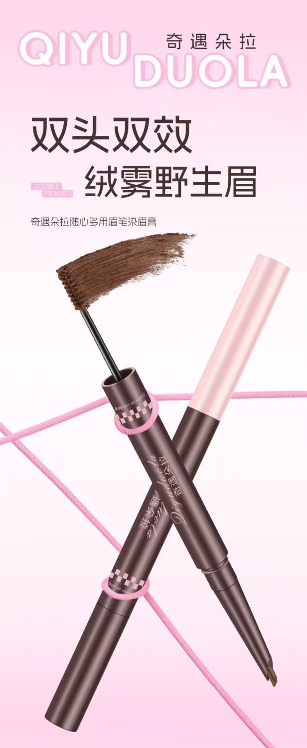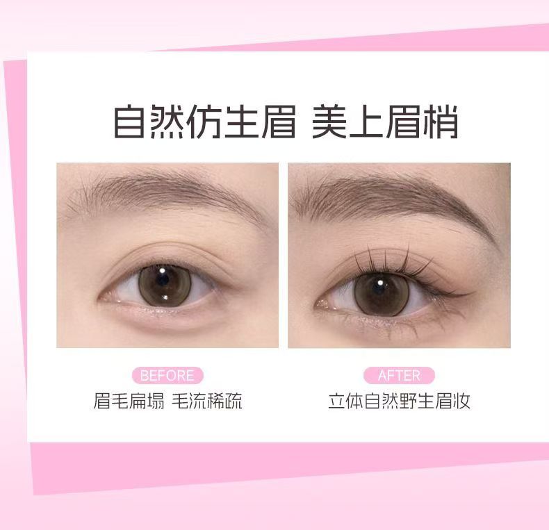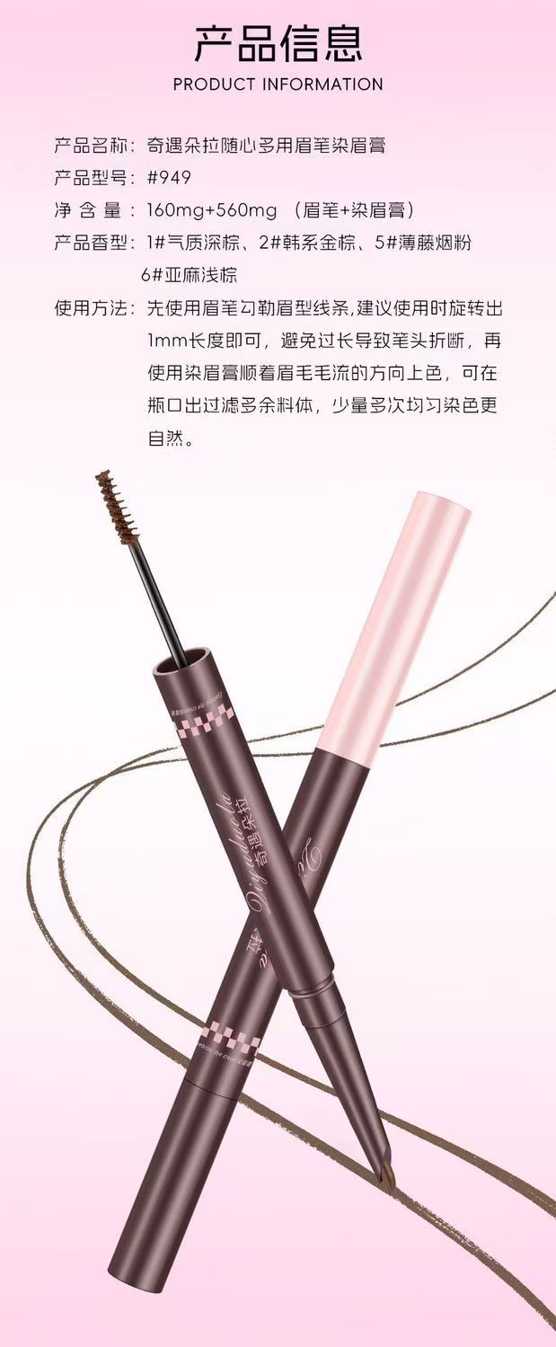 雙頭雙效設計,眉筆精準勾勒眉形,染眉膏均勻填充上色,一筆搞定自然毛流感,不結塊,持久顯色不暈妝