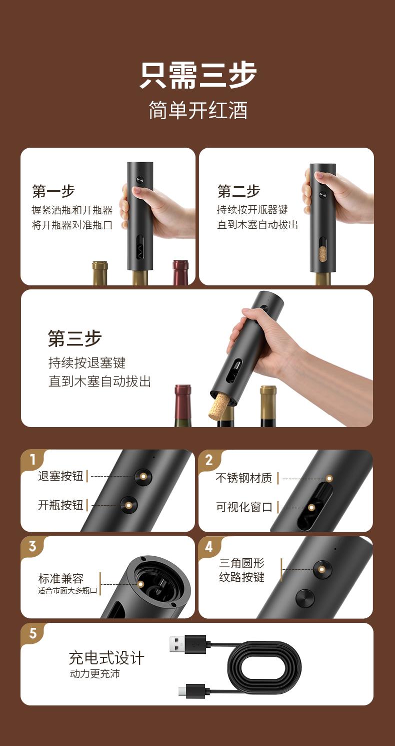 充電款電動開瓶器,一鍵自動開瓶,3秒優雅取塞,USB充電設計,環保省力