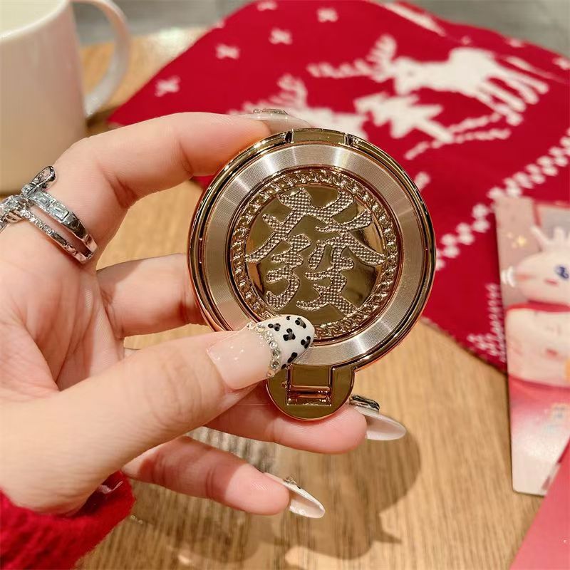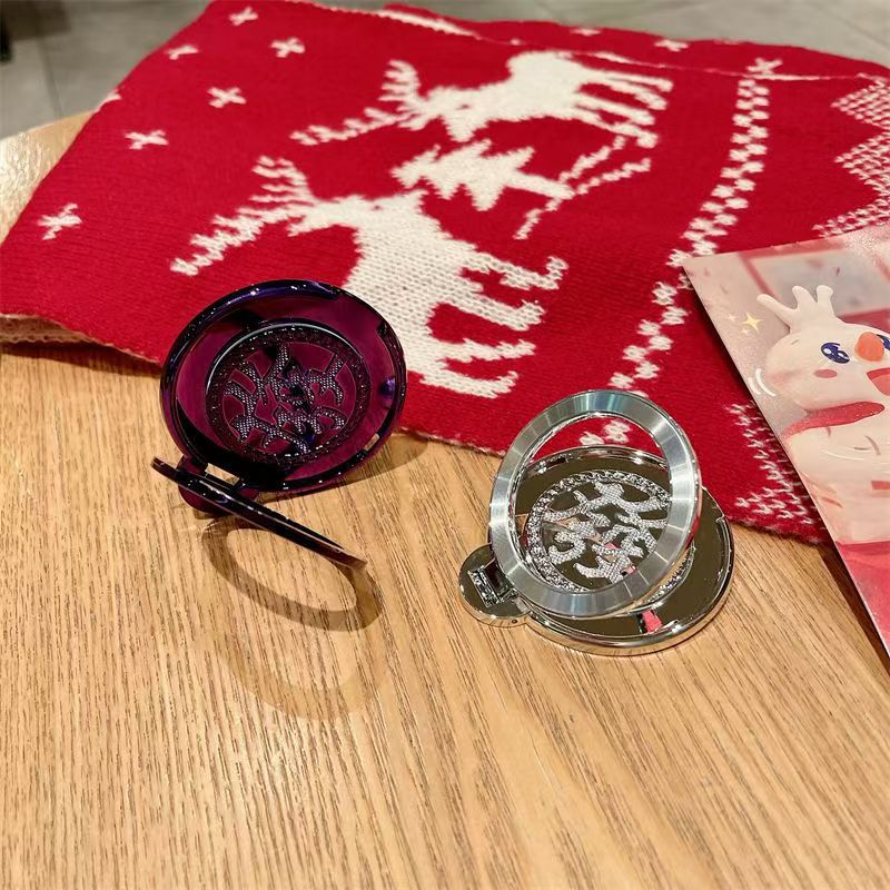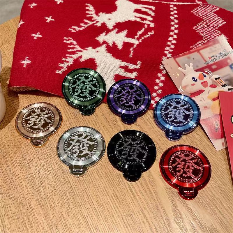 可折疊設計,揣進包裡不佔空間,鏡面 + 水鑽花紋設計,既是手機支架也是桌面小擺件