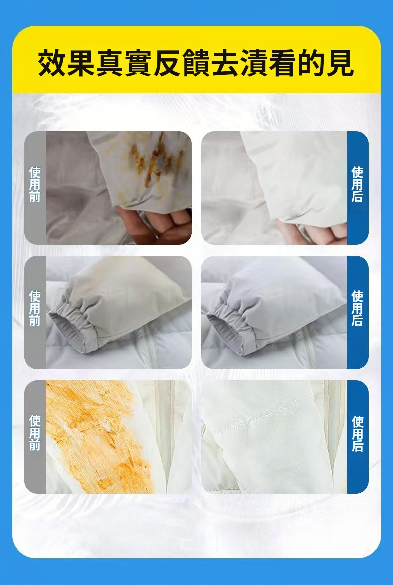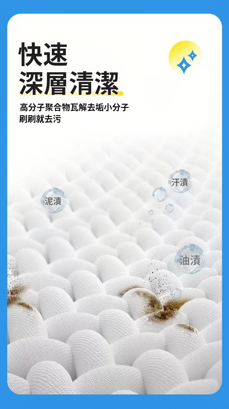 自帶刷頭設計,一刷即凈,就像每天穿新衣,強效去漬,不管油性、水性,通通一張搞定