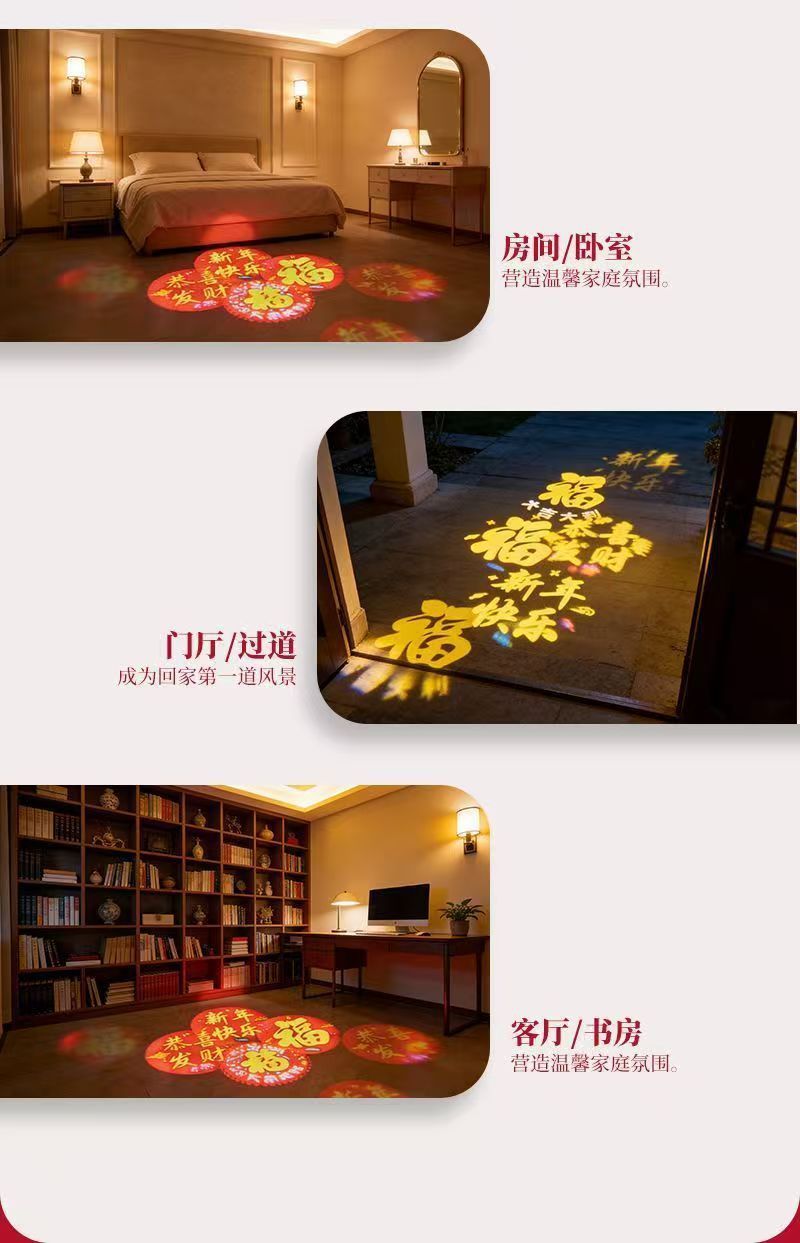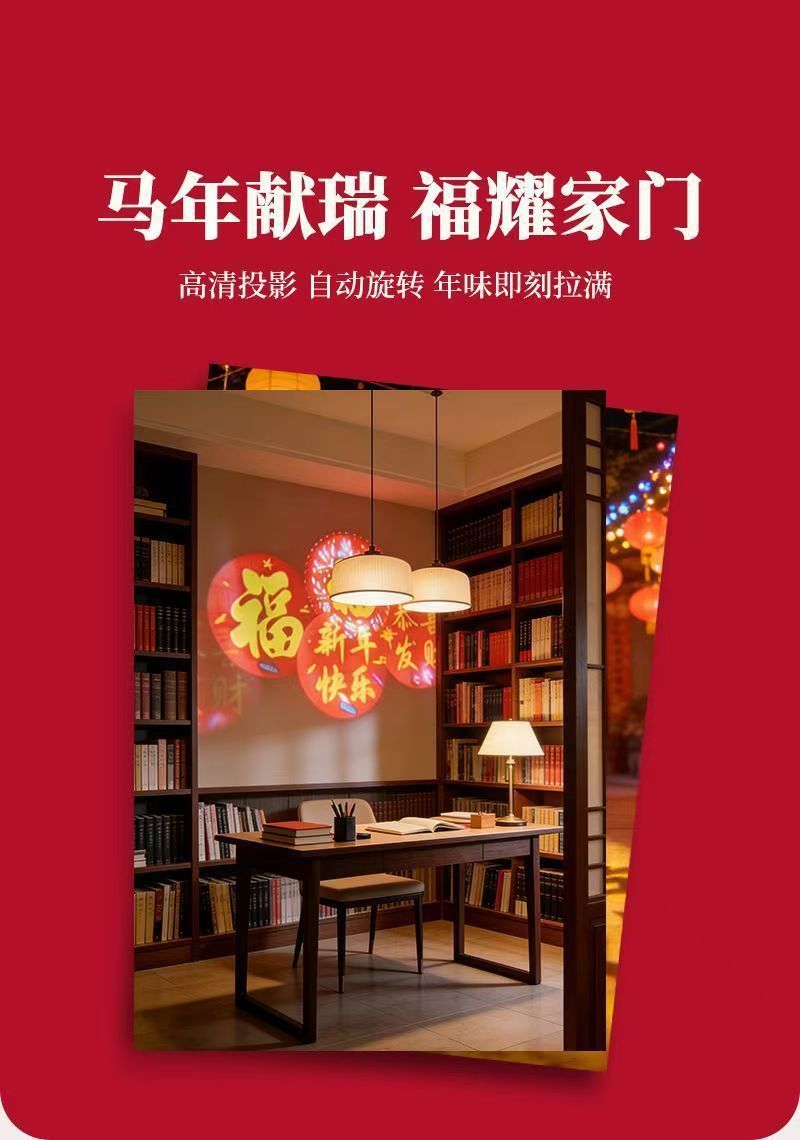 【高清投影旋轉福字燈】高透蜂窩水晶,自動旋轉,清晰投影,氛圍感滿滿,福照全家,營造溫馨氛圍