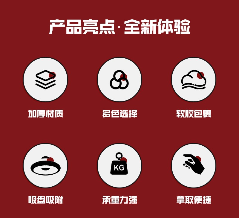 吸盤設計,承重力強,拿取便攜 讓門打開透氣,防黴不説還不會有異味