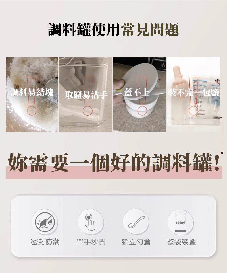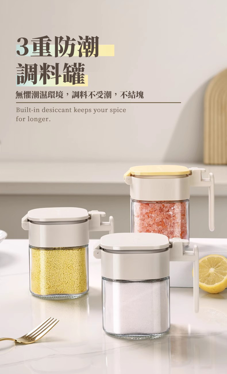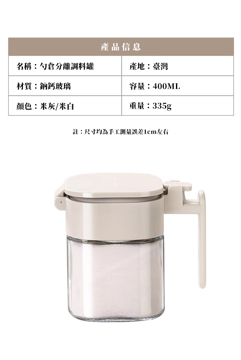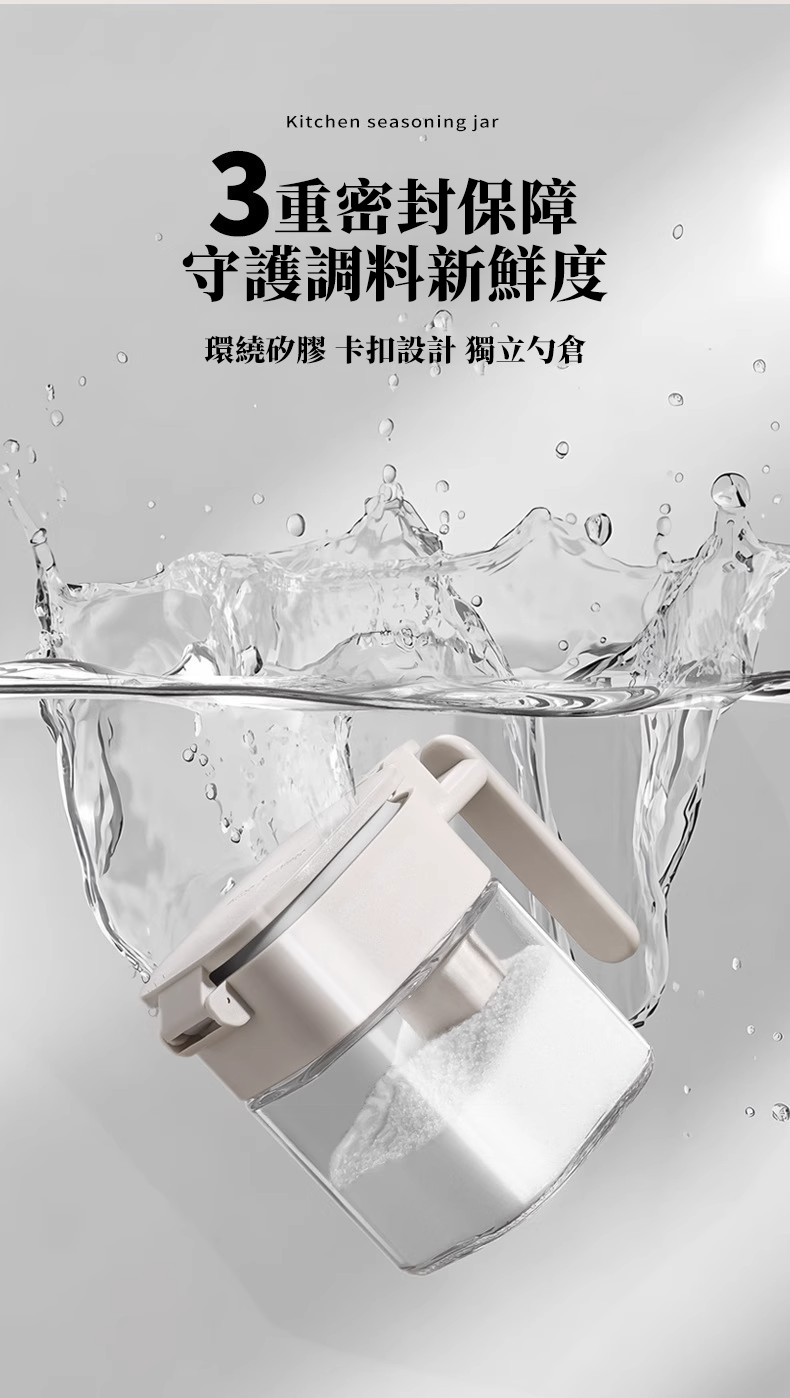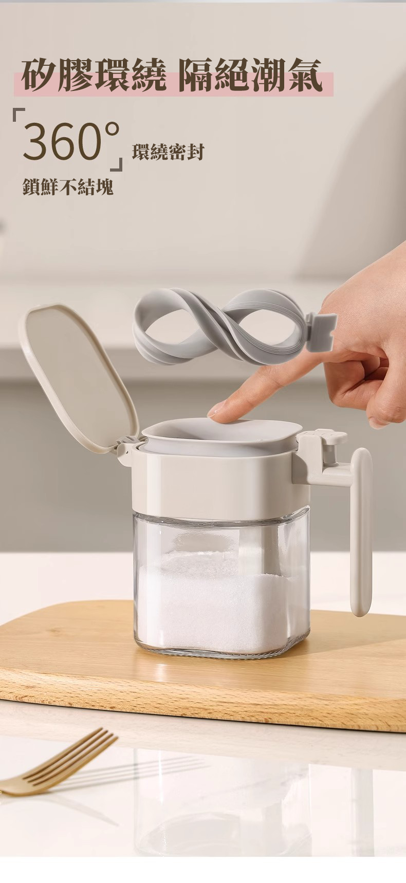 獨立小勺收納,一罐一勺,防止串味,雙重出鹽方式,定量或自由,精準掌控