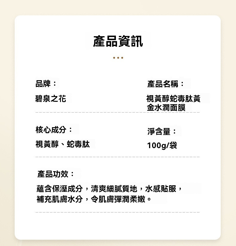 24K金箔導入,促滲抗老,淡化細紋乾紋超明顯,爆補水潤,多重透明酸鎖水,熬夜肌秒回飽滿狀態