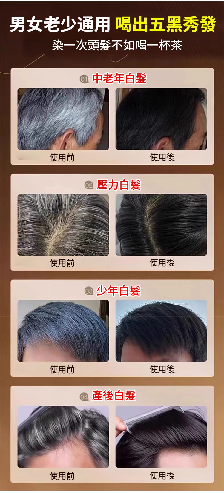 精選原料,科學配比,內調養髮,每天一杯,五黑草本植萃,以黑養黑,遠離染髮危害,還你健康黑髮