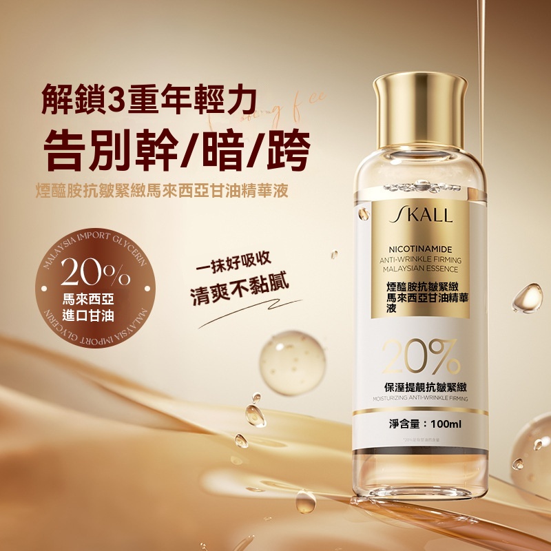 20% 馬來西亞進口甘油 + 菸鹼醯胺,一抹化水好吸收,清爽不黏膩,乾紋暗沉一次搞定,三重年輕力:深層補水 + 提亮膚色 + 緊緻抗皺,熬夜後濕敷 5 分鐘,皮膚立刻透亮回彈